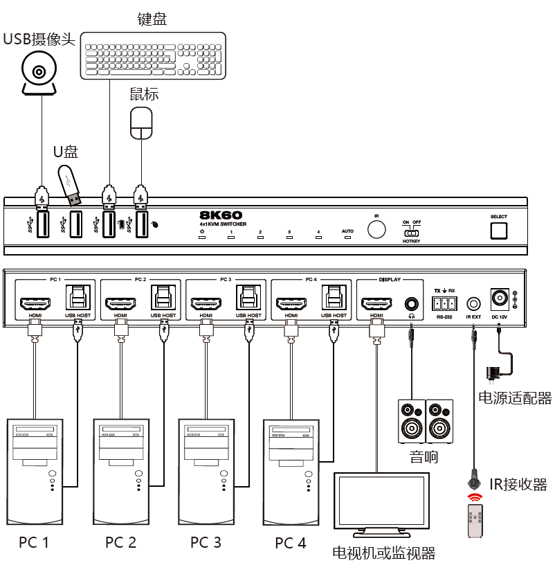 8K60 4x1 HDMI KVM切換器 HS-KVM041H-8K60